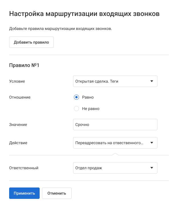 Если ваша компания использует несколько номеров, вы можете настроить сценарии работы в amoCRM для всех номеров сразу или для каждого в отдельности.