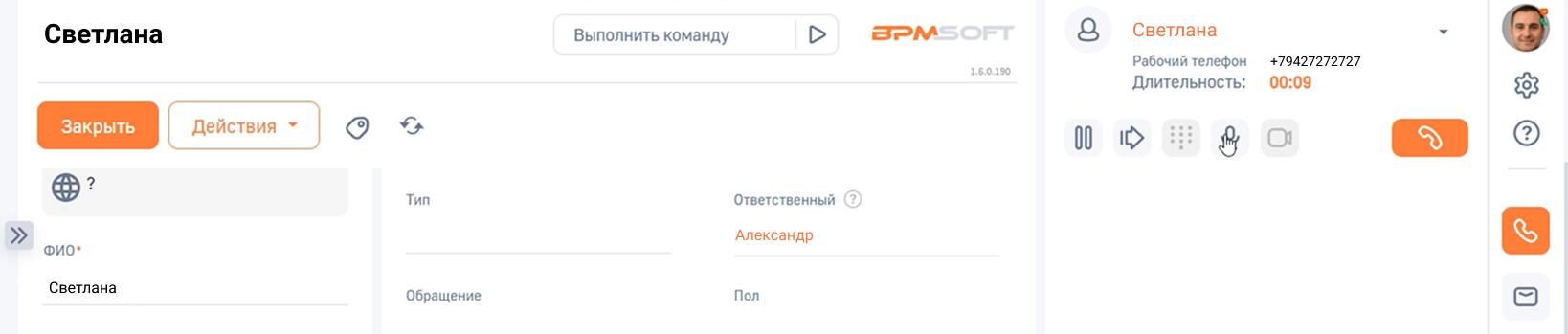 Менеджеры тоже оценят выгоду от интеграции – при каждом звонке BPMSoft будет показывать карточку клиента, а контакты и лиды будут создаваться автоматически.