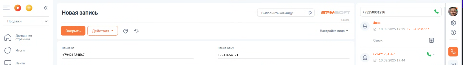 1. Работа с входящими звонками в интерфейсе BPMSoft