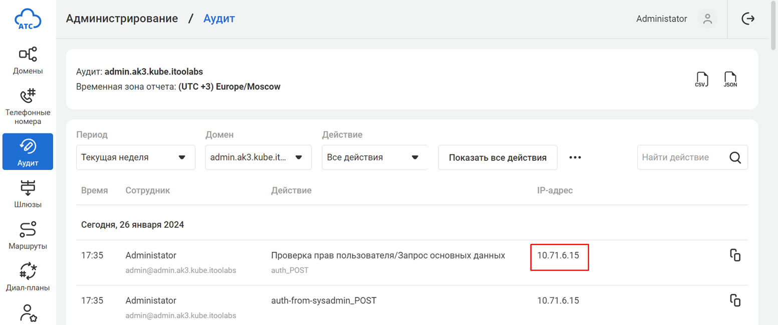 Чтобы отфильтровать все действия по одному IP-адресу, нажмите на нужное значение в столбце IP-адрес.