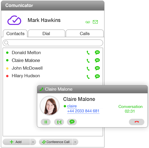 The Cloud PBX Communicator is a software phone (softphone) for your computer. It completely replaces a desktop phone. To make calls via Communicator, you need a computer, headset, and an internet connection.