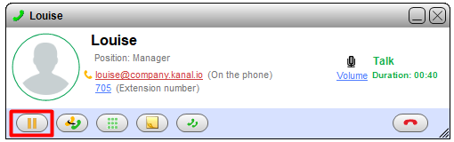 If you need to briefly interrupt a conversation to clarify some information, you can click Hold the call.