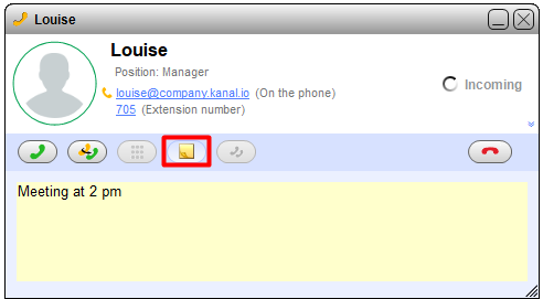 You can take notes and jot down important details directly within Communicator during a call. You don't need to have a notepad and pen handy for this. Simply click the Note button in Communicator and write the desired note.