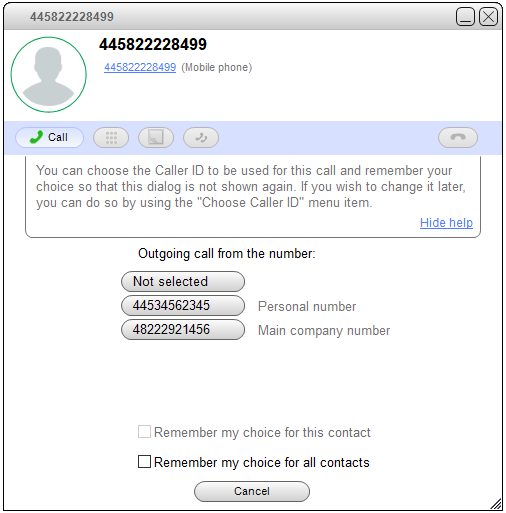 If you always need to make calls from the same number, you don't have to select it as the outgoing number every time. Simply check the option Remember my choice for all contacts and then choose the number you want to call from. From that point forward, all calls will default to the selected number.