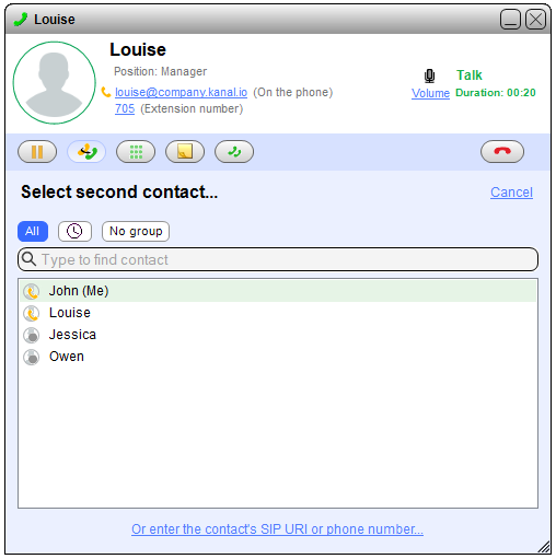 If you need to gather several colleagues or clients in a single call, you can organize an audio conference and manage it directly through Communicator.