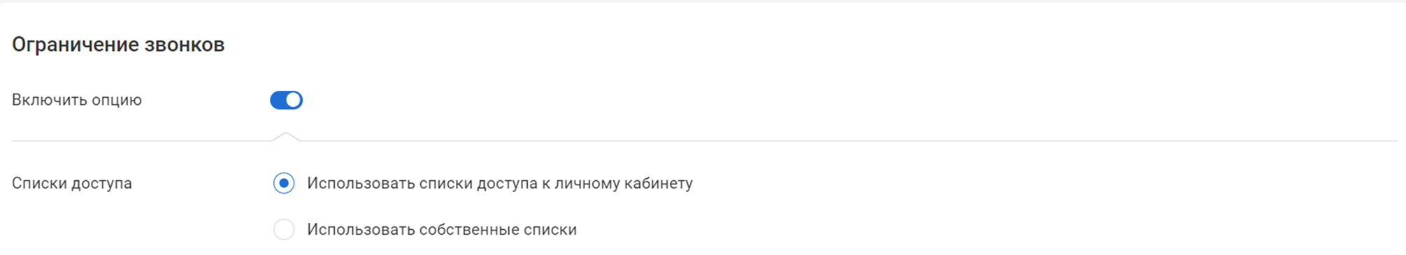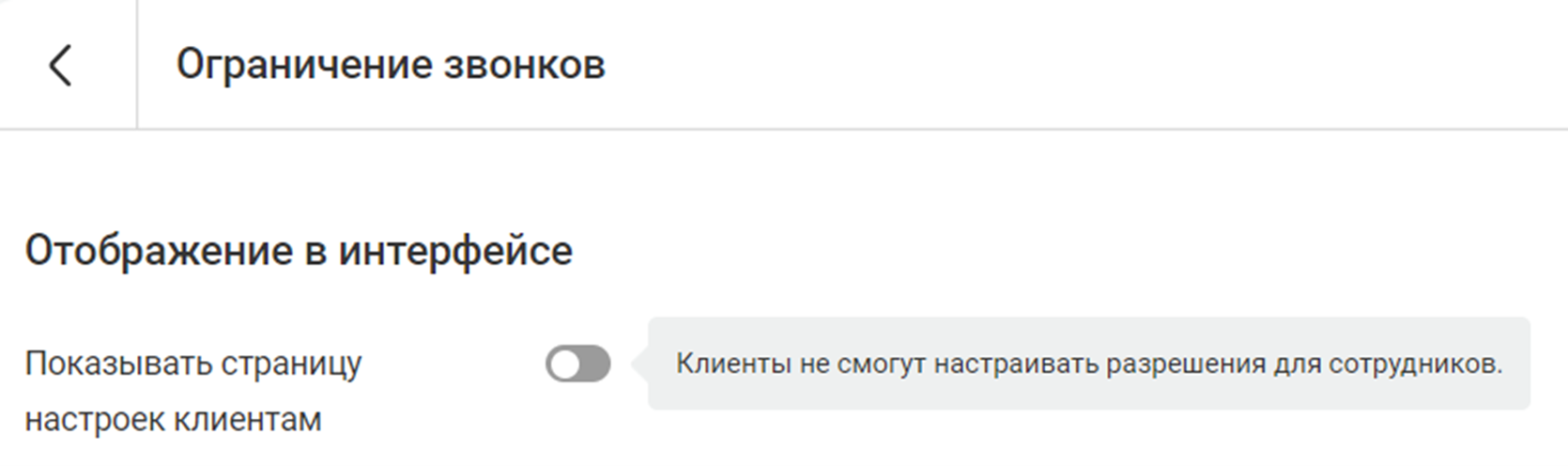 - Чтобы скрыть настройки ограничения звонков в клиентском интерфейсе, переведите переключатель в положение Вкл.