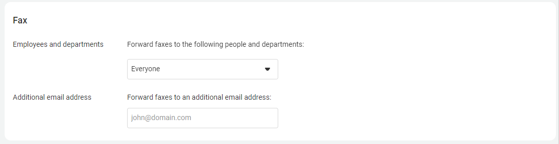 During the fax setup, specify the email addresses the faxes will be sent to. You can also configure them through More — Company Auto-Answer and fax.