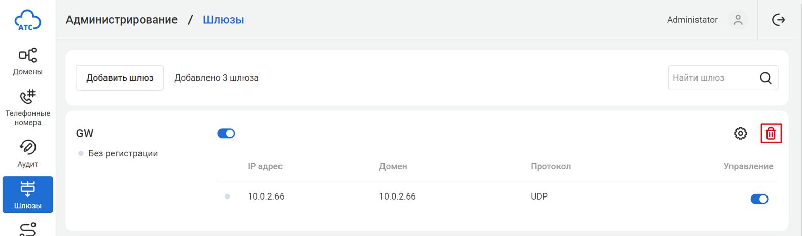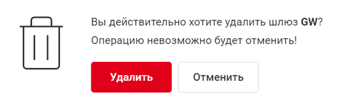 1. Нажмите на корзину в правой части экрана в карточке нужного шлюза.