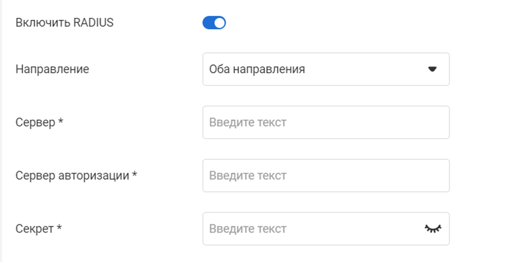 3. При необходимости настройте интеграцию с системой биллинга по протоколу RADIUS. Для этого нажмите переключатель у пункта Включить RADIUS.
