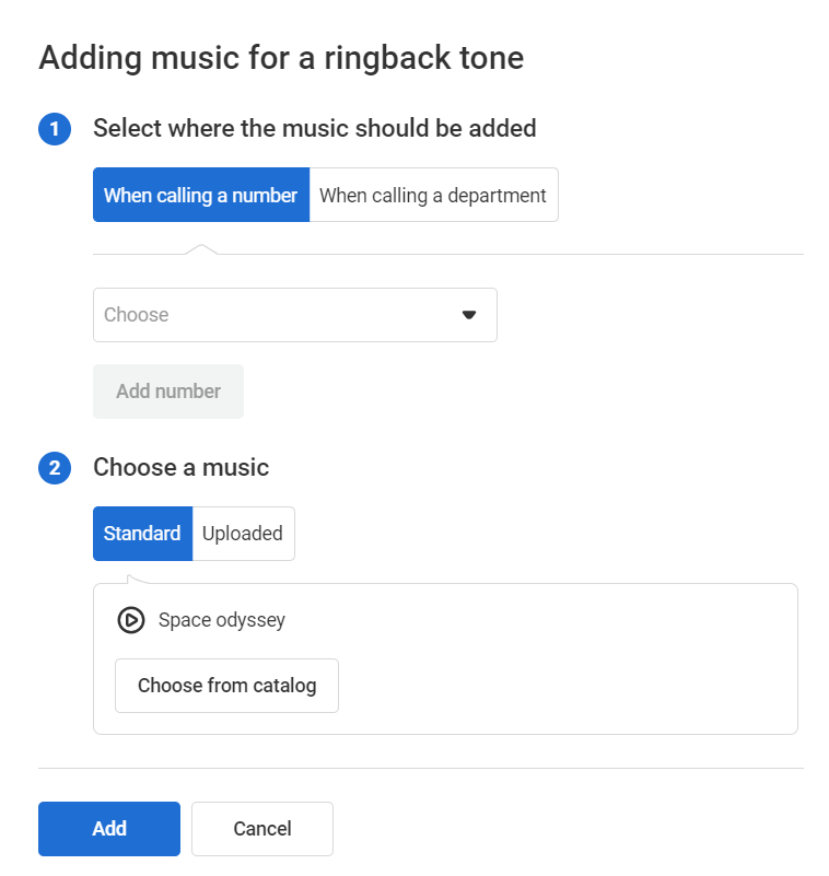 You can add a unique melody to each department or number. Click Add music in the Music for departments and numbers section.