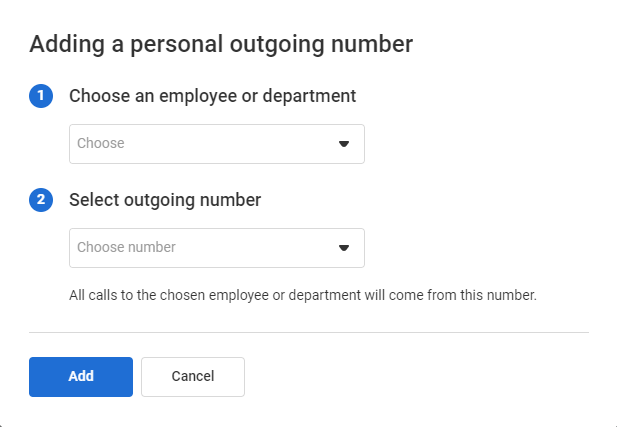 If an employee has both personal and department numbers, the system will choose the personal number for outgoing calls.
