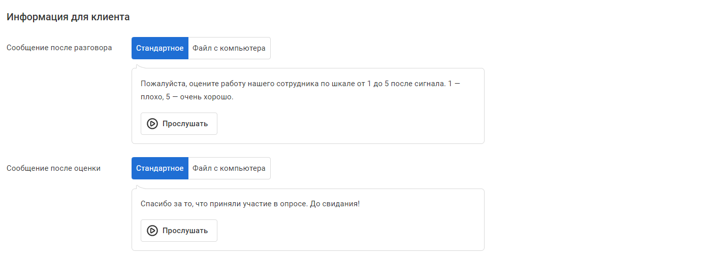 You can configure a quality assessment after each call and then review the collected data in the History section. You will listen to the recordings of problematic calls and comprehend the concerns your customers have expressed.
