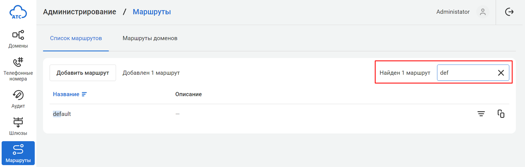 Во вкладке Маршруты домена также можно искать маршруты по названию, связанному с ними доменов.