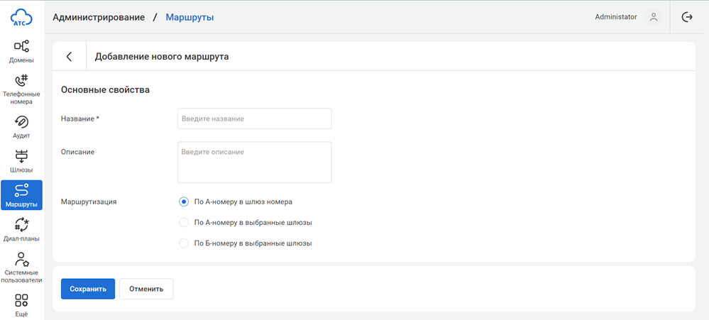 - Маршрутизация — тип маршрутизации. Изменить тип после создания маршрута нельзя.