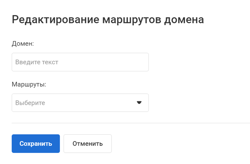 2. В форме редактирования маршрутов домена введите доменное имя и выберите маршруты.