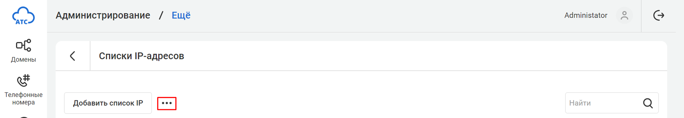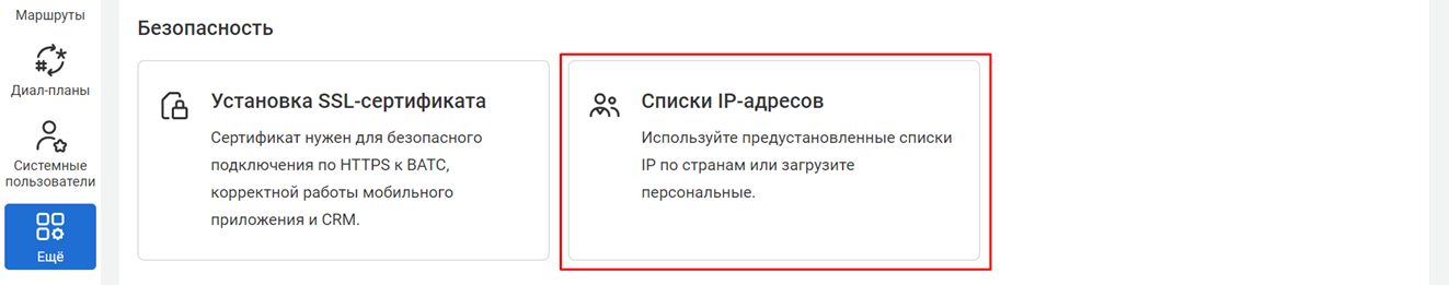 1. В разделе Ещё блок Безопасность выберите Списки IP-адресов.