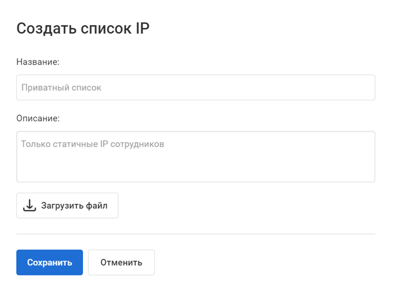 • Загруженные IP должны записываться отдельно на каждой строке (разделитель — перевод) и содержать маску (например: 1.2.3.4 / 1).