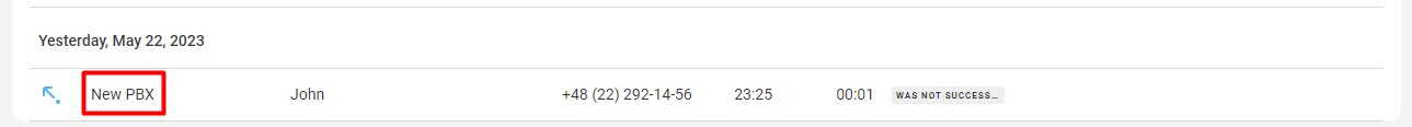 The office PBX calls will be displayed under the name of that PBX in the History section.