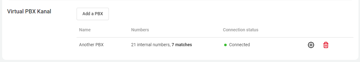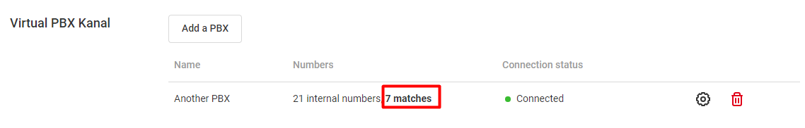 If automatic synchronization doesn't occur, you will see a Synchronize button in the connection settings of the other PBX. Click it to perform a manual synchronization.