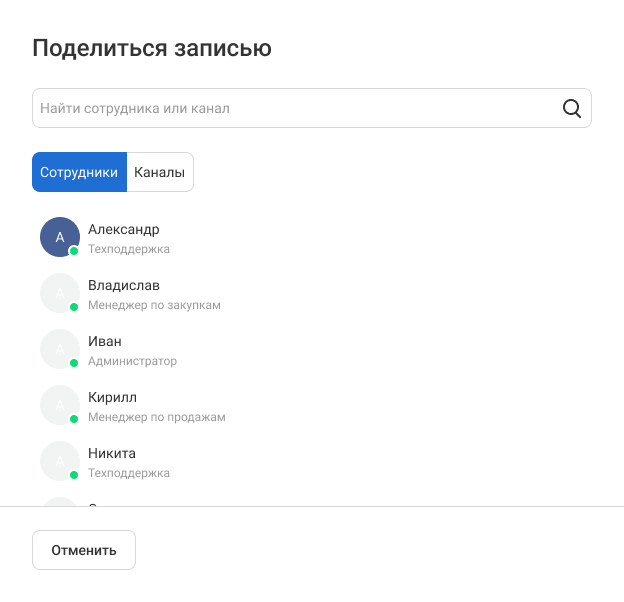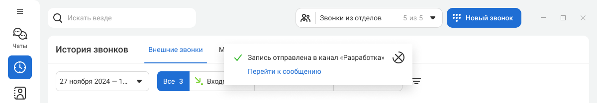 Появится окно с уведомлением об отправке записи. Из него вы можете перейти в чат, куда отправлена запись.