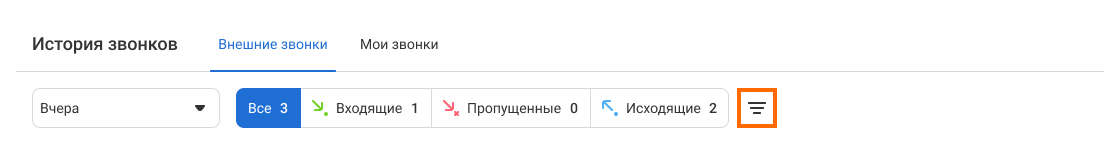 Нажмите на кнопку «Фильтры», чтобы открыть панель фильтров. С ее помощью можно отфильтровать звонки не только по клиентам и сотрудникам, но и: