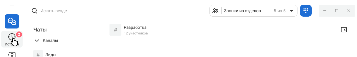 Чтобы быстро найти нужного клиента, коллегу или канал, воспользуйтесь единым окном поиска. Прямо из окна поиска можно написать или позвонить контакту.