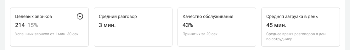 Чтобы разобраться не только в количестве, но и в качестве звонков, далее можно посмотреть следующие показатели:
