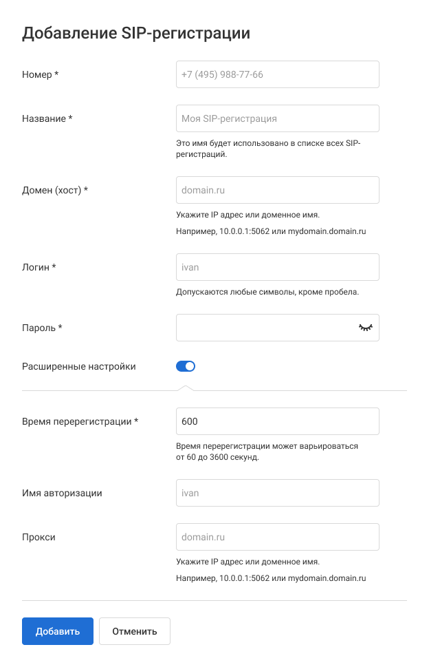 Если ваш оператор выдал вам SIP-логин, пароль и адрес сервера, выберите «SIP-регистрация». Если ваш оператор не выдал эти данные, но может переадресовать звонки на SIP URI, выберите «Переадресация номера на SIP-адрес».