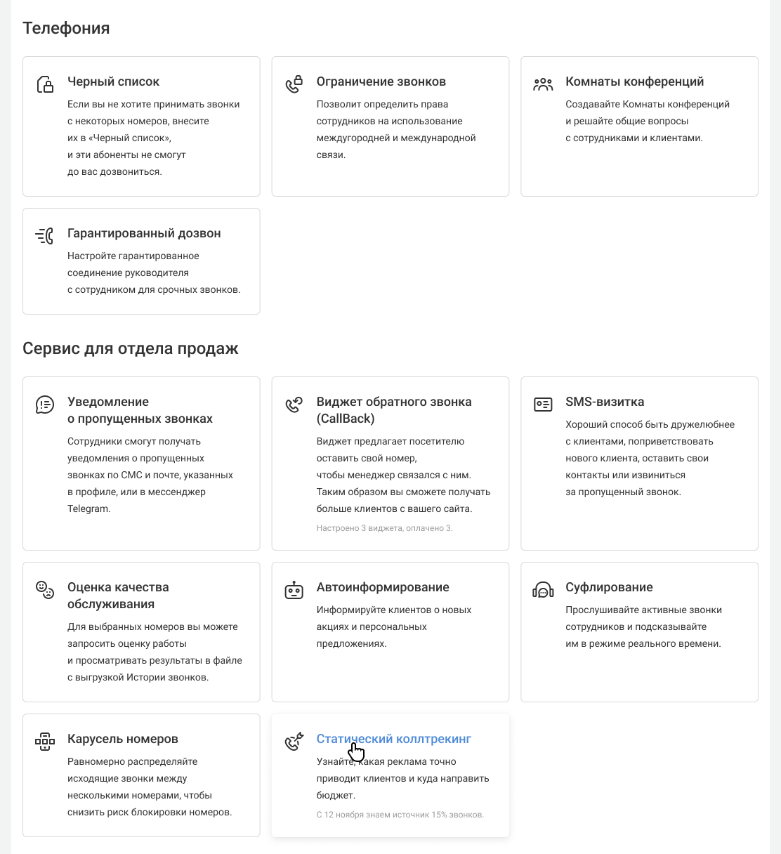 1. Перейдите в раздел «Настройки» — «Еще» — «Статический коллтрекинг».