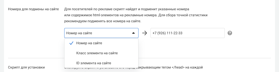 Чтобы ваш сайт автоматически показывал нужный рекламный номер посетителю в зависимости от того, откуда он пришел, настройте подмену номеров.